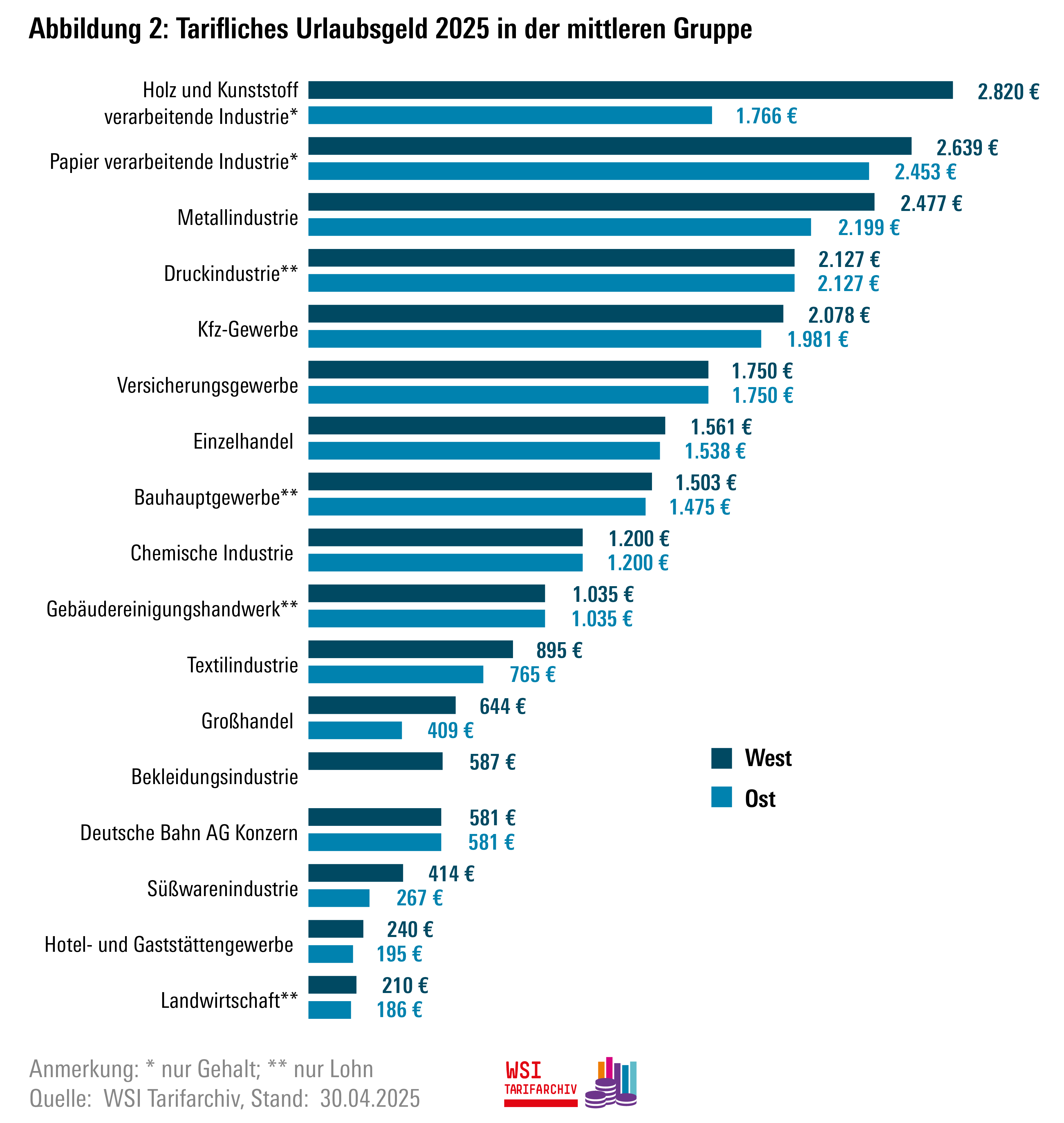 Große Unterschiede in der Höhe des tariflichen Urlaubsgeldes